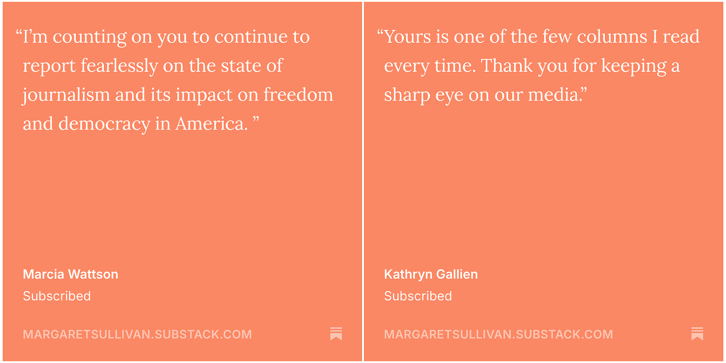 The purpose of ‘American Crisis’: My aim is to use this newsletter (it started as a podcast in 2023) to push for the kind of journalism we need for our democracy to function — journalism that is accurate, fair, mission-driven and public-spirited. That means that I point out the media’s flaws and failures when necessary.