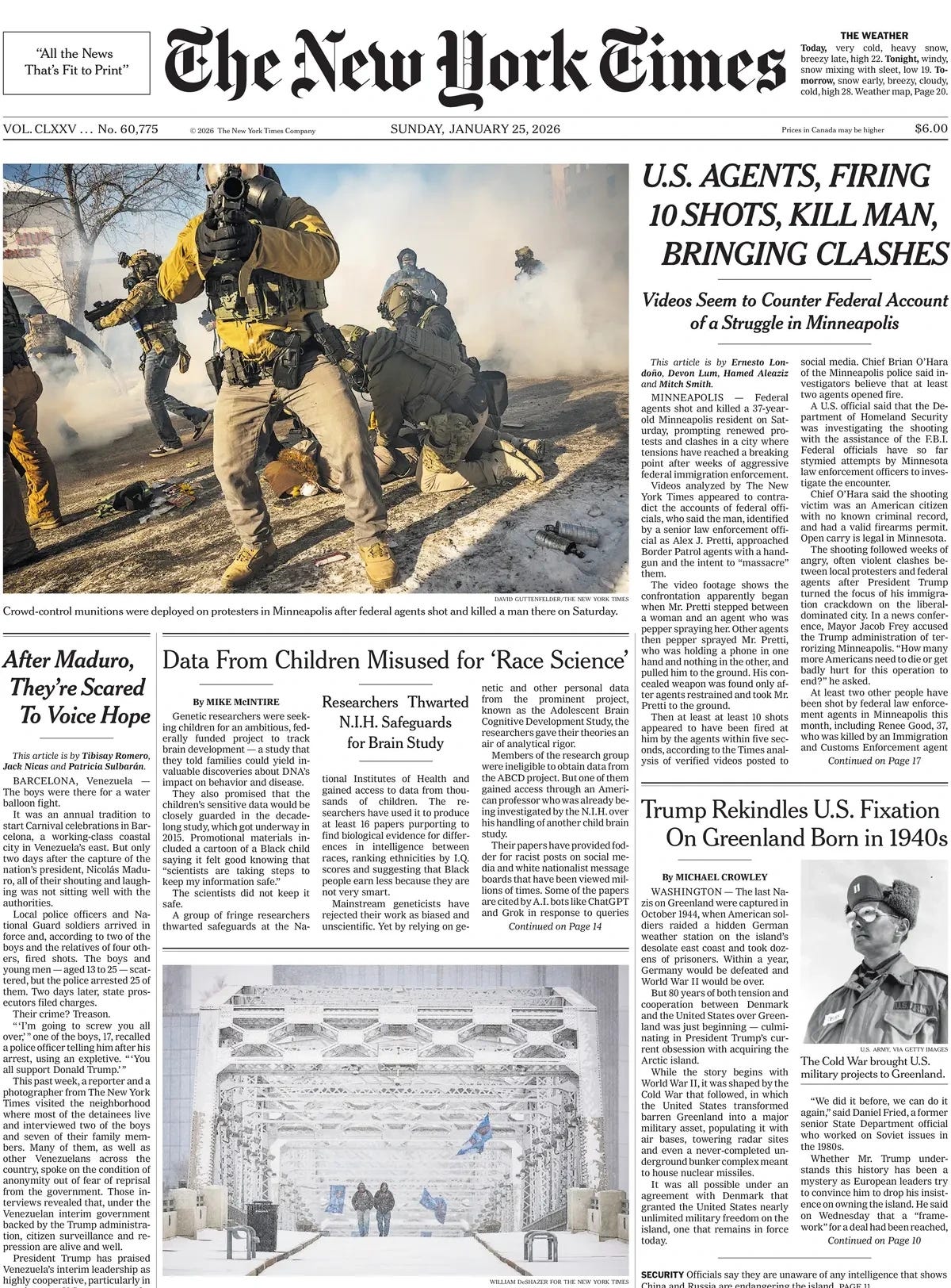 Overall, I was appreciative of the first-day Times reporting, and that done by the Washington Post, CNN, and the Wall Street Journal — all of which did their own analyses of multiple bystander videos. These analyses contradict the Trump administration’s full-on propaganda campaign, so ably assisted by Fox and others.