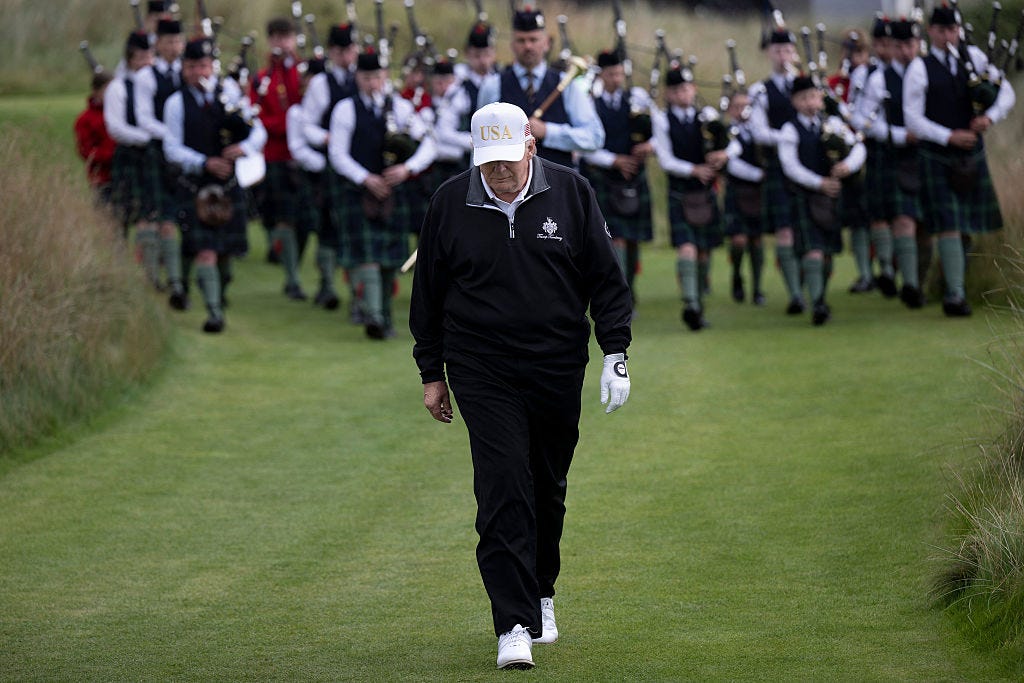 “Violating the Constitution and his promise not to be involved in his businesses, President Trump uses taxpayer dollars and the color of an ‘official’ act to hawk his own properties, in this case a golf course in Scotland.”