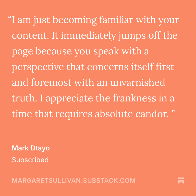 Readers, thank you very much for subscribing. The “American Crisis” paywall — which I removed around the time of November’s election — remains down; you can read and comment here at will. If you choose to be a paid subscriber, that’s much appreciated but certainly not necessary. The important thing is to have the chance to hear from you and to know that so many people care about the relationship between the media and democracy.